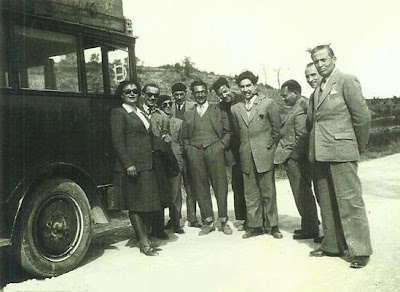Aquí, a peu d'autocar que els devia portar a alguna actuació, hi reconec, d'esquerra a dreta: