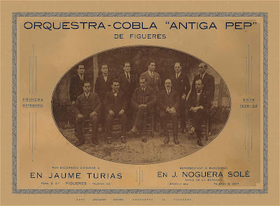 Observem una col·locació dels músics una mica diferent a la d'avui dia; era abans de la incorporació del trombó a la Cobla: