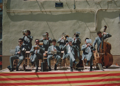 Drets: Gabriel ("Gabi") Duch [trombó], Carles Cantenys [1er tenor], Josep Ventura [2n trompeta], Roc Marco [1er tible], jo mateix [2n tenor], Francesc Felip ("Paco Xeto") [1er trompeta] i Hilari ("Lari") Garcia [2n fiscorn]