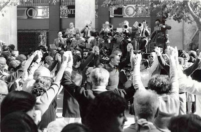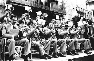 Una de les malediccions de l'ofici: tocar a ple sol. Els músics són els mateixos en totes aquestes fotos de 1977.