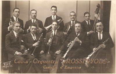 En el detall de l'orquestra puc reconèixer Vicenç Llovell i Joan Gelabert, els dos cornetins; a davant, inconfusible amb el seu mostaxo de color blanc, Baldomer Pastells ("l'Avi Rau").