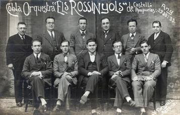 Es pot reconèixer Vicenç Llovell (1er trompeta) Salvi Callís (1er fiscorn), Baldomer Pastells ["l'Avi Rau"] (flabiol) i els germans Enric i Josep Riera (1er i 2n tenor).