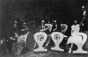 Darrere: Desconegut (trombó), Salvador Callís (trompeta), Alfons Arbussé i Aymerich (contrabaix) i Francesc Mas i Ros (piano i director)