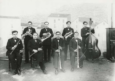 Davant: Joan Fontàs ("Marxant") [jazzband], Esteve Vila [saxo i clarinet] i Miquel Piñana [saxo i clarinet].