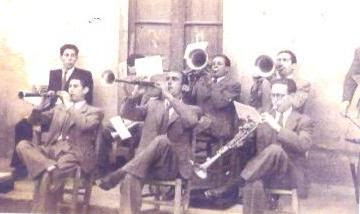 Davant: Joan Recort (jazzband), Eleuteri Capdevila (saxo tenor), Ferran Rigau (saxo alt), Vicenç Xarbau (trompeta), Eduard Coll (cornetí -eren temps de transició del cornetí cap a la trompeta, l'Eduard s'hi resistia-), Anton Planas (banjo) i Josep Ribera (banjo).