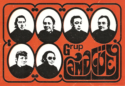 Davant: Joan Busquets ["Pèla"] (vibràfon -habitualment tocava la bateria-), Enric Alemany (baix), Lluís Soriano (cantant i saxo) i Enric ["Quique"] Dorca (trompeta).