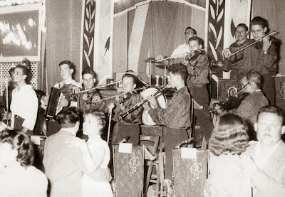 Davant: Narcís Miquel ("Siset") [saxo tenor], Antoni Moré ("Toni Petit") [saxo tenor], Pere Cortada [violí], Josep Riumalló [violí], Narcís Perich [saxo alt] i Francesc ("Cari") Pomés [saxo alt, que en aquest tema no tocava].