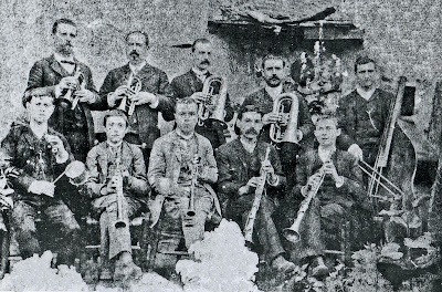 Davant: Jaume Esteve ["Met refilaire"] (saxo), Ricard Viladesau (saxo), Josep Gumà (banjo), Josep Estrany ["el noi de Cal Endal"] (flauta) i Josep Mercader (jazz-band).