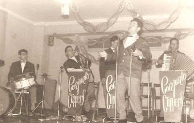 D'esquerra a dreta: Joaquim Joan i Fageda (bateria, amb qui vaig coincidir dos anys a la Cobla-orquestra La Principal de la Garrotxa), Emili Pallàs (saxo), Lluís Gravulosa (trompeta), Joan Puigdemont ["el sabater de Pekín"] (vocalista i contrabaix) i Ramon Costa ["Begudan"] (acordió).