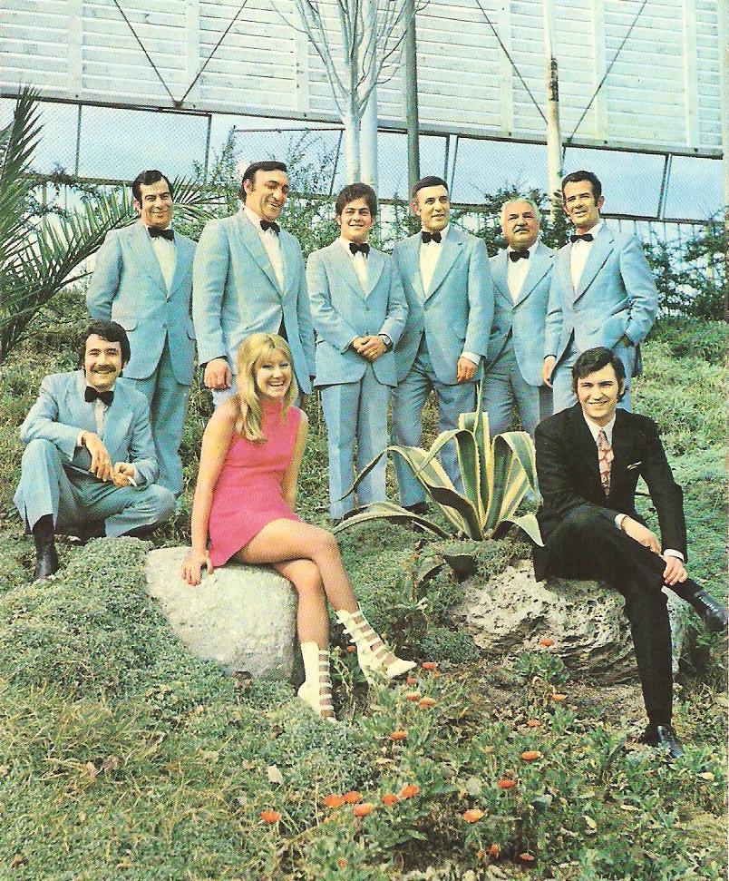 A dalt: Josep Miró (violí i trompeta), Joan Bros (violí i contrabaix), Francis Ros [Francesc ("Paco") Rosado] (cantant), Marcelino (saxo tenor, violí, clarinet i flauta) i Francisco Hernàndez (bateria).