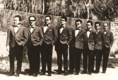 D'esquerra a dreta: Desconegut, Jaume Sanglas, Desconegut, Desconegut, Àngel Piñana ("Àngel Santantoni"), Jesús Bosch, Desconegut i Josep ("Pepet") Sanglas.