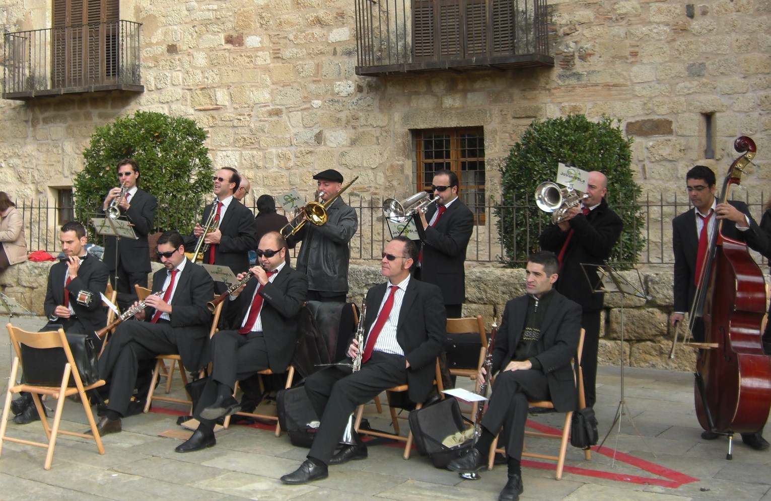 Darrere: 3 trompetes: Joan Arnau, Josep Crusellas, Xavier Puig; 2 trombons: Joan Salanguera i Rubèn Ginesta *; 2 fiscorns: Joan Pérez i Tomàs Tormos; i Joan Carles Samaranch, contrabaix