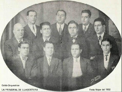 Davant: Martí Llosent i Vendrell, Salvador Parés i Sidera (amb qui vaig coincidir a la Cobla-orquestra Màxim's), Tomàs Bahí [bolo], Martí Camós i Martí Llosent i Molà ("el Sastre").