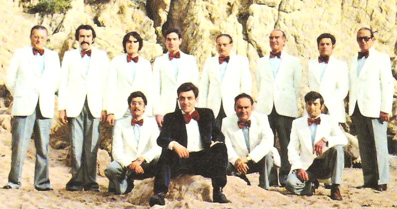 Davant: Lluís Soriano (cantant), Josep Gispert ["Púbol"] (saxo), Joan Roviras ["Joan de Verges"] (saxo), Jordi Rigau (saxo) i Antoni ["Tonet"] Farriol (saxo).