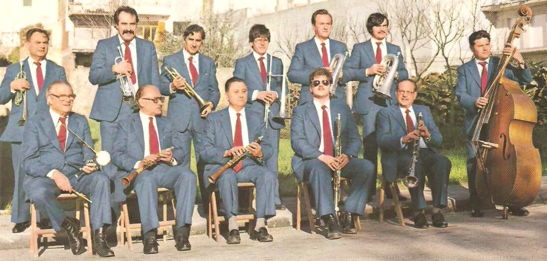 El cantant és en Lluís Soriano. Darrere, els trompetes Josep Batlle i Martí Bota i Cañigueral (representant), i Silvestre Vergés al trombó. A davant, els saxos: Josep Gispert i Vila ("Púbol") (recentment jubilat després de molts d'anys com a primer tenor de la Cobla-orquestra La Principal de La Bisbal), Joan Roviras ("Joan de Verges"), Jordi Rigau i Antoni ("Tonet") Farriol.