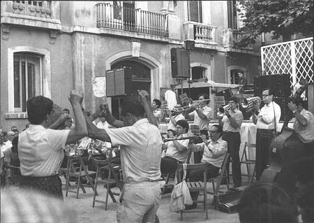 Darrere només es veu els dos trombons: Francesc Sala i Pérez ("Panxo") i Joan Casellas