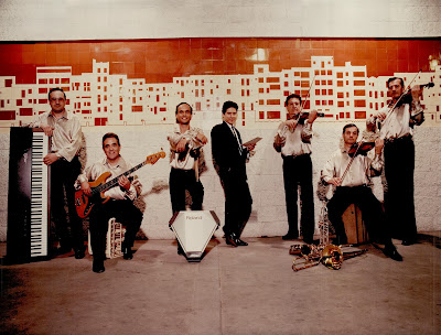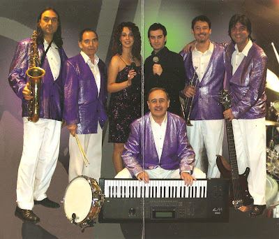 Davant: Lluís Brugués (piano), Blas (cantant), Eliseu Quintana (baix), Joaquim Caula (violí), Josep Vilar (violí) i Emili Corominas (violí).