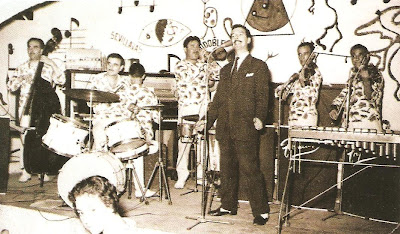 En primer terme: Agustí Prunell (trompeta), Josep Vilar i Crous* (cantant), Joan Bataller (saxo tenor) i Romà Membrado ["Rony Bray"] (saxo tenor).