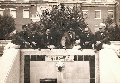 D'esquerra a dreta: Josep Mª Barretina i Carbó, Alfons Miàs (hi ha músics que te'ls trobes a totes les "guerres" !), Desconegut, Desconegut, Marc Girona (amb qui vaig coincidir uns anys a la Cobla-orquestra Atlàntida), i Francesc Romero, que, contrastant amb en Marc, era calb com una bombeta.
