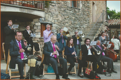 Aquí els tenim tocant pel matí al Roser de les Fonts, d'Olot.