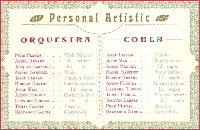 Detall dels components. La font d'on extrec el material no és gaire bona, però sortosament a darrere hi ha els noms dels músics. Poso primer l'instrument d'Orquestra i després el de Cobla.