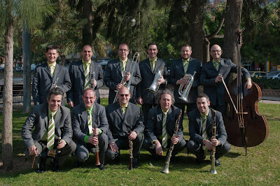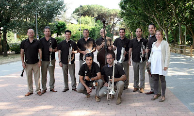 Darrere: Jordi Pons, Jordi Serrano i Quevedo, Pere Montserrat, Josep Antoni Balada, Rubèn Ginesta (amb qui vaig coincidir una temporada a la Cobla La Principal d'Olot) i Tomàs Espanyó