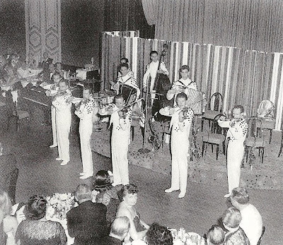 D'esquerra a dreta: Fernando Porredón, José Luis Martínez de los Arcos (que substiuia a Alejandro Ruano, el qual formaria orquestra pròpia, a Cuba), Manuel Palos, Ventura Martínez, Lluís Bona, Luís Tamayo, "Pepe" Lara, Sebastià Morera, Agustí Lizandra, Àngel Riera i Josep Milà.