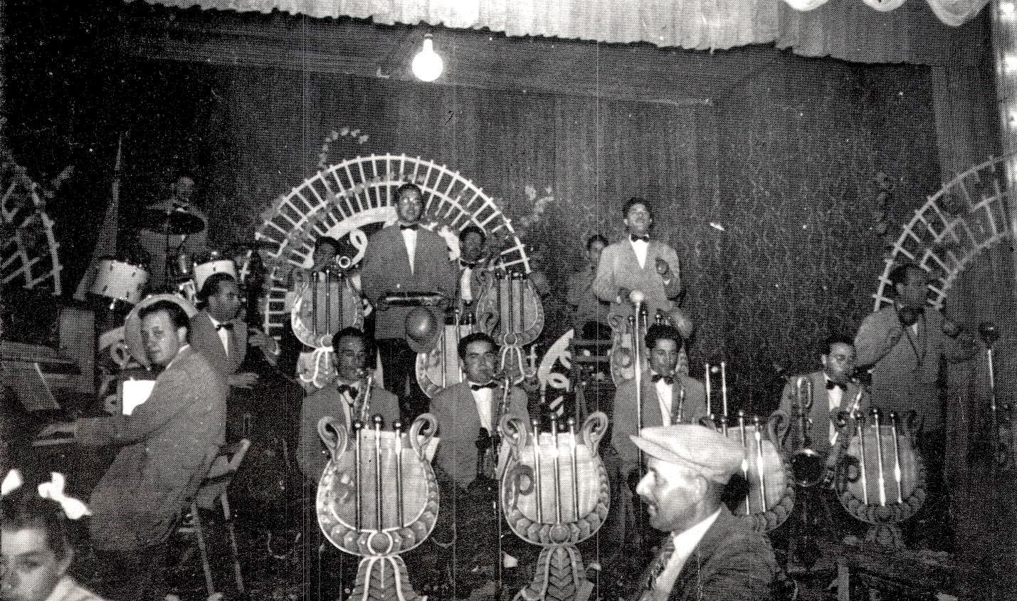 En segon terme: Pere Masriera i Turró (saxos i flauta), Josep Juan (trompeta), David Calvet i Amaro (trombó), Carles Simon (bateria), Jordi Quintana (baix) i Josep Prat i Pla (piano i teclats)