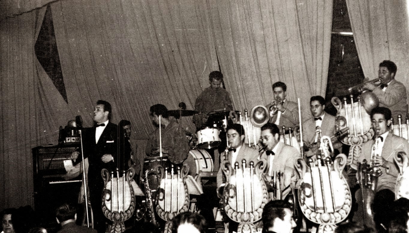 En segon terme: Eduard Calbet i Freixanet (saxo alt), Josep Juan (trompeta), Carlos Domingo (bateria), Jordi Comella (baix) i Francesc ["Cesc"] Terradas i Espona (teclats)