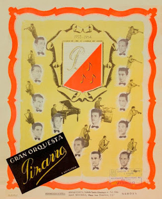 Quarta pàgina del quadern, destacant la secció de vent: Jordi Rigau (saxo), Eliseu Quintana (trombó) i Josep Juan (trompeta).