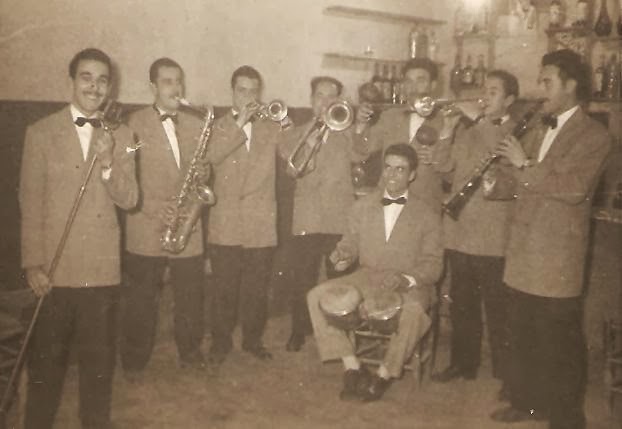 En segon terme: Josep Juan i Pomés (trompeta), Jordi Rigau (saxo) Carles Simon (bateria) i Joan ["Nitu"] Figueras i Fontané (piano i teclats)