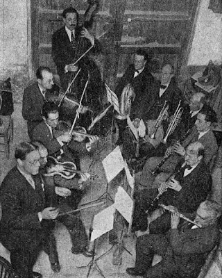 Drets: Abdó Martí (clarinet), Jaume Dagà i Vallès ["Biló"] (fiscorn), Desconegut (no sé quin instrument), Desconegut (trompeta), Desconegut (no sé quin instrument), Joan Vinyals (violí director), Josep Bernadàs (trompeta), Joaquim Sagristà i Canals (clarinet) i Anton Esteve (contrabaix)