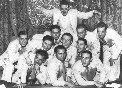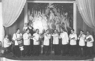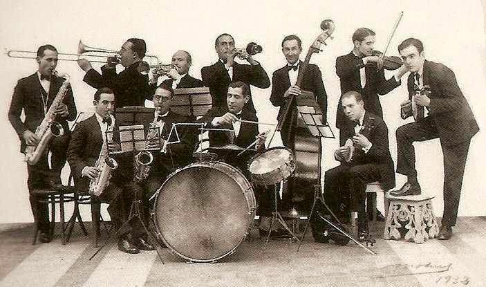 M'apunta en Jaume Nonell que alguns dels músics no surten a la foto amb l’instument que habitualment tocava. Aquí la foto és per ensenyar que podien fer una orquestra amb molts violins. Per exemple, en "Paco" Monzó era el bateria i aquí toca el violí; i en Pío Torrecillas tocava el saxo tenor i aquí està al piano, quan era en "Peret" Torres el pianista ...