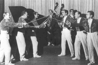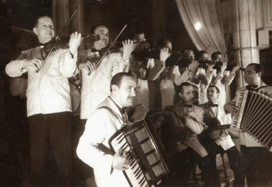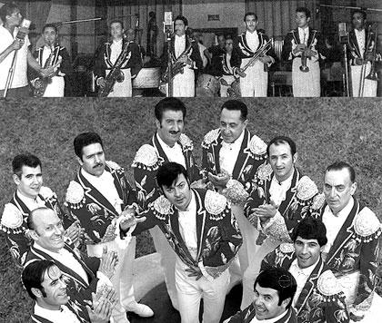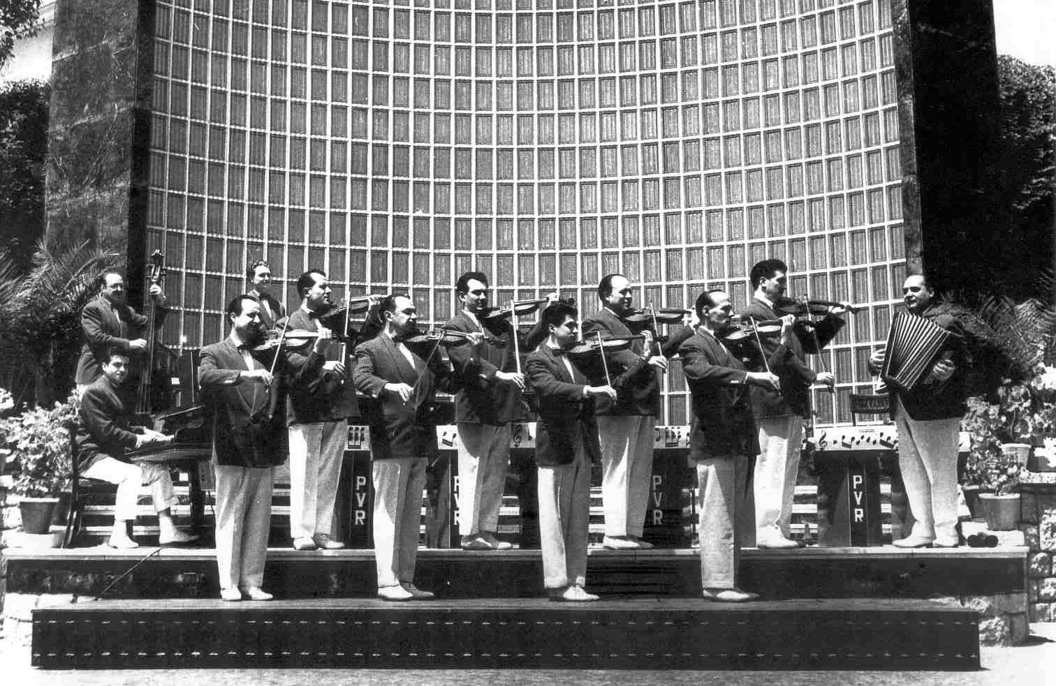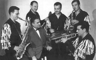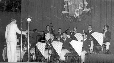 Acordió: Luís Rosende; Cantant: Enrique España; a dalt de tot: Rafael Granados; saxo darrere el violí: Rossend Motas.