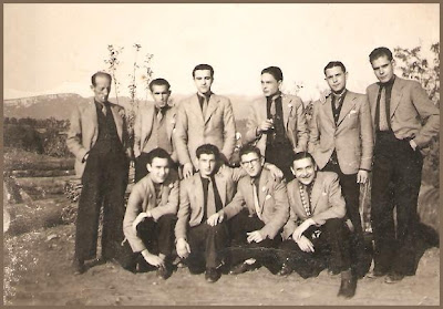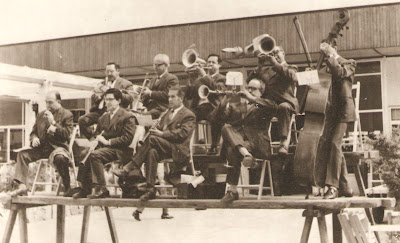 Els dos músics de dalt a l'esquerra són: Joan Riera i Garriga ("Nin"), a sobre, i Josep Bonet, a sota, amb els que vaig estar cinc anys a la Cobla-orquestra Màxim's.