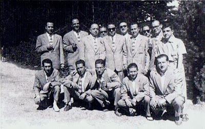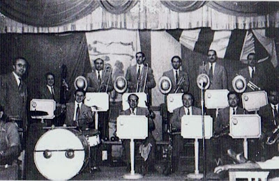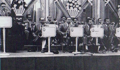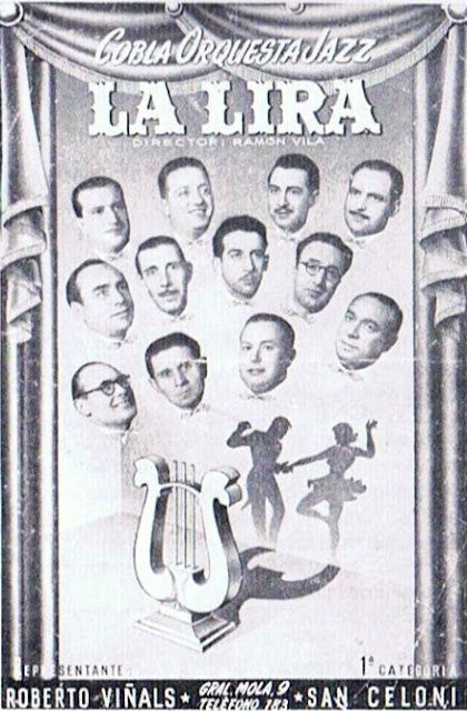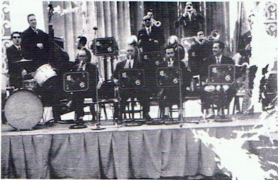 Davant: Josep Ferrer (trombó), Lluís Comas (trompeta), Emili Figueras (piano, en segon terme), Enric Comas (trompeta), Esteve Xarbau i Boada (saxo), Enric Molla (saxo) i Joaquim ["Quimet"] Bofill (saxo).