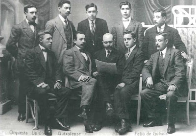 A la foto, una de les primeres formacions de la Cobla-orquestra Unió Guixolenca, vers l'any 1910. A dalt i d'esquerra a dreta hom pot reconèixer a: Josep Mercader (?), Josep Pascual, Antoni Carbonell i Cosp, Francesc Figueras i Joaquim Viladevall i Mauri. Asseguts: Josep Roig i Roqué, Gregori Reyes i Vidal, Joan Rutllens, Enric Pey i Joaquim Mundo i Albertí ("Mundu", de Llagostera). Per més informació, clica aquí