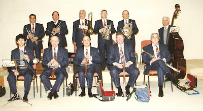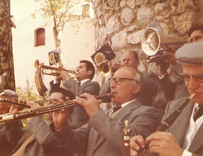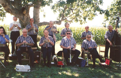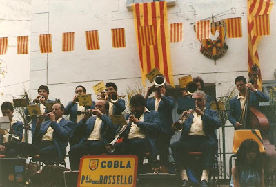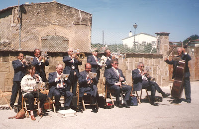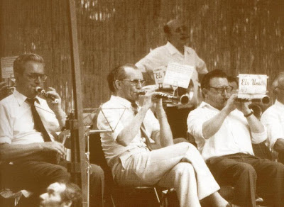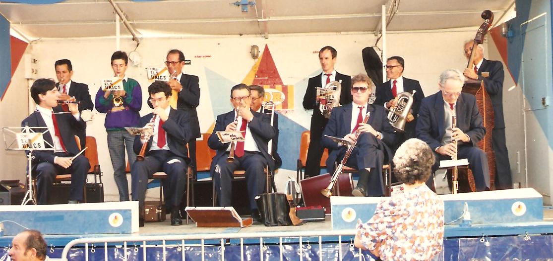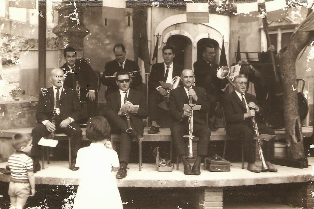 Darrere: Jean Parayre ("Nono"), Stéphane Barbe, Raymond Agustí, Jean Billès (és el trombó que està assegut), Olivier Schock, Emili Saló (amb el seu pare Eusebi tenien una botiga de música i taller al C/. Col·legi, 51, de Figueres, on hi vaig comprar el meu primer saxo tenor, un Selmer Mark VI, amb l'estoig fabricat per ells -estoig que encara tinc i faig servir- i on també vaig comprar l'estoig de la tenora que he conservat fins l'any 2015) i Jean Erre