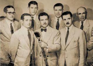 D'esquerra a dreta: Lluís Pujadó i Queraltó, "Mari" Coronas, Josep Mª Guardiola, Joan Vallès i Rafecas, Fèlix Domènech i Roig i Josep Tort Arnabat.