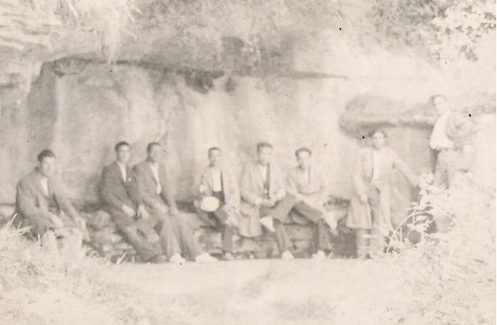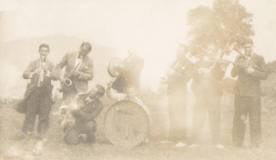 Aplec de Can Moi (Camprodon), el mes d'Agost. El trombó, de bolo, és en Valentí Soler. El mes anterior havi entrat en Josep Bashi, segon tenor.