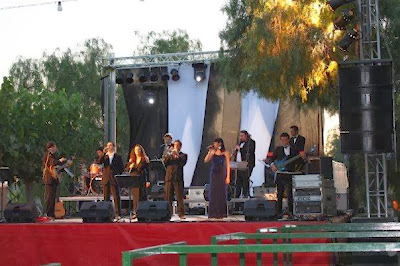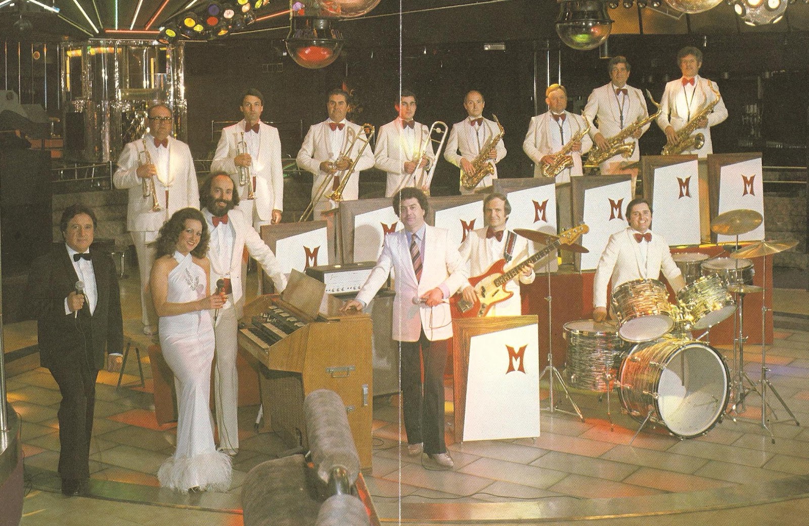 Cantants, d'esquerra a dreta: Joan Pere Agramunt; Cristina López, Ramon Abellà (propietari de l'orquestra), Ana Cañabate, Lola i Enric Companys Sala (